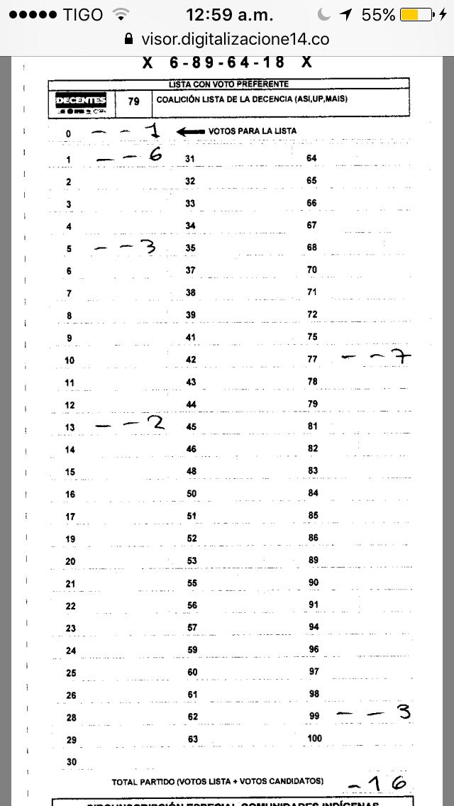 No puedo verificar que los resultados dados por la Registraduría en mi consulta sean ciertos, no sólo no están disponibles en línea por mesa y no lo estarán nunca, sino que contrario al fallo de la Justicia, me negaron los testigos electorales en las mesas.